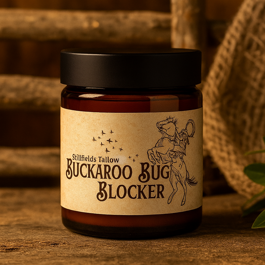 Crafted right here on our farm, this cowboy-tough balm keeps bugs at bay while hydrating your skin with the goodness of grassfed and finished beef tallow. No sprays, no chemicals—just pure protection from the land.